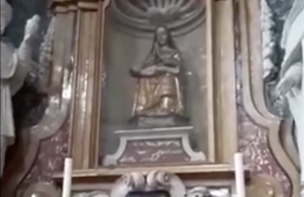 La supplica alla Madonna recitata dal Parroco di Ala, don Alessio, nella chiesa parrocchiale dedicata a Santa Maria Assunta.