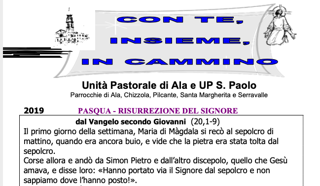 È stato pubblicato il bollettino settimanale della parrocchia di Ala!