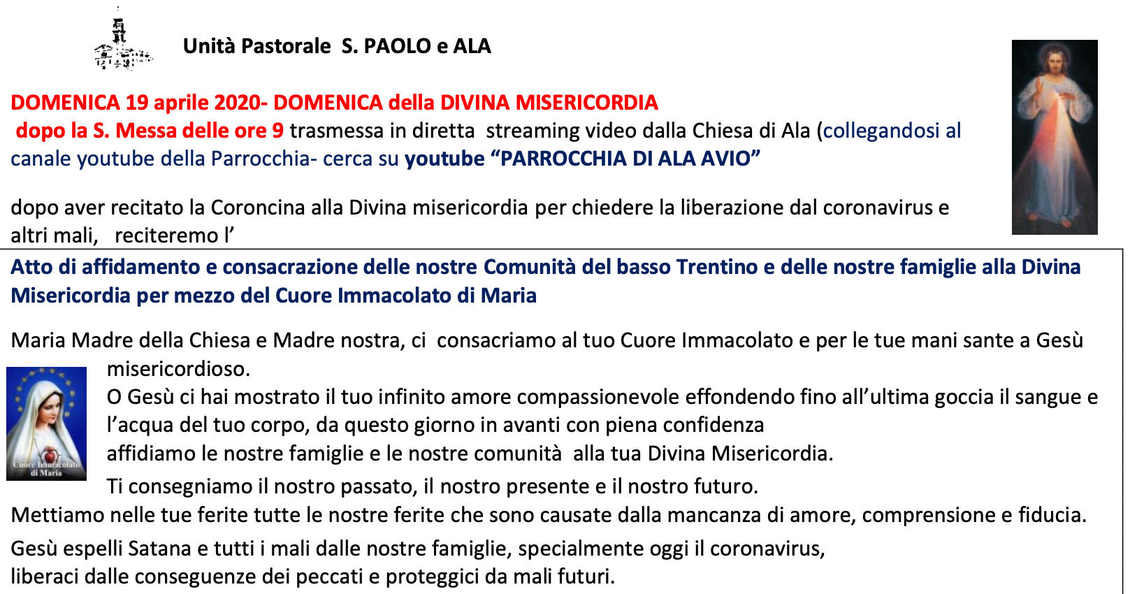 È stato pubblicato il bollettino settimanale della parrocchia di Ala!