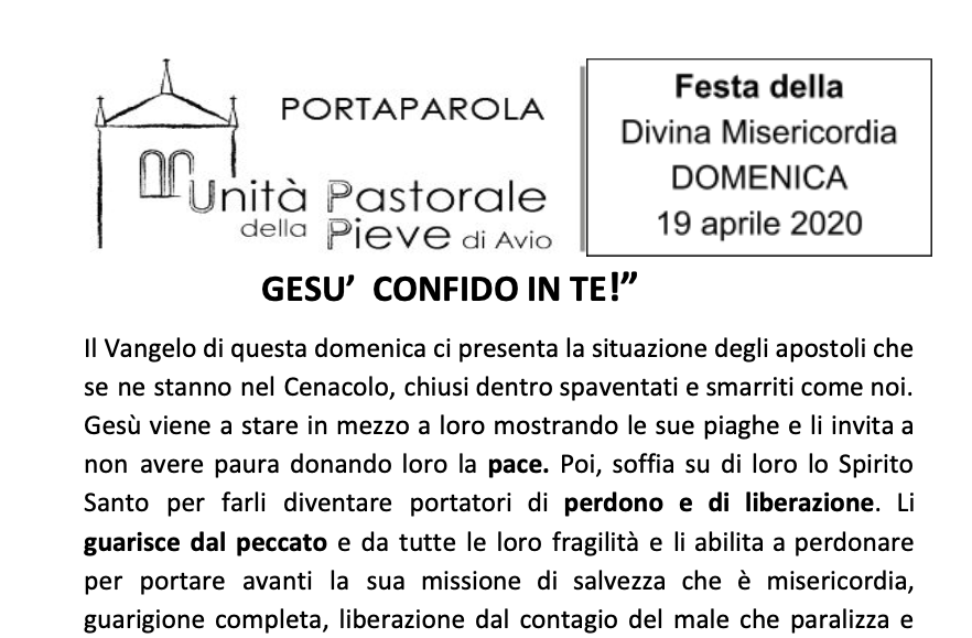 È stato pubblicato il bollettino settimanale della parrocchia di Avio!