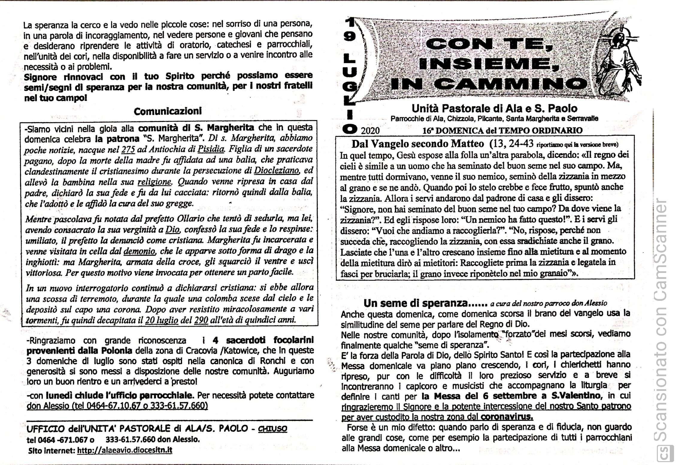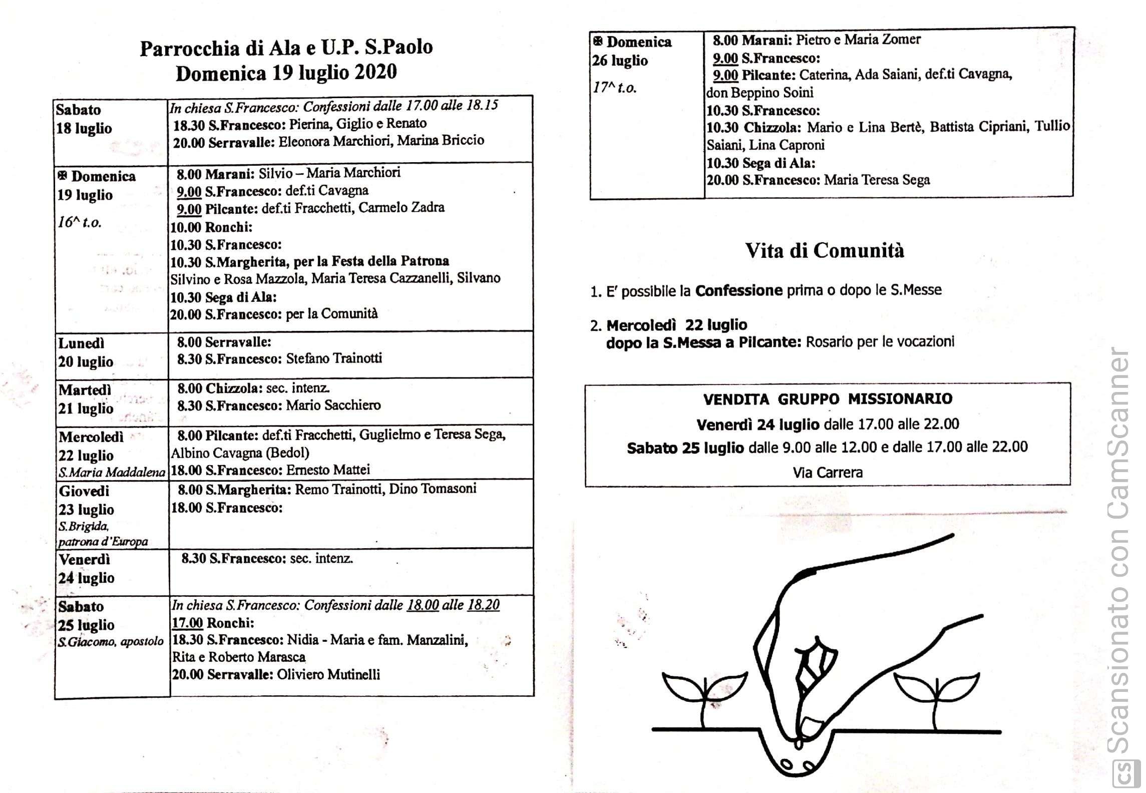 È stato pubblicato il bollettino settimanale della parrocchia di Ala!