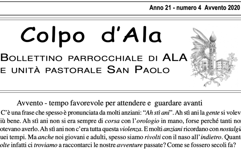 Colpo d’Ala – Avvento 2020 Pubblicato il 20 Dicembre 2020 È stato pubblicato il bollettino dell’Avvento 2020! Scaricalo cliccando qui.