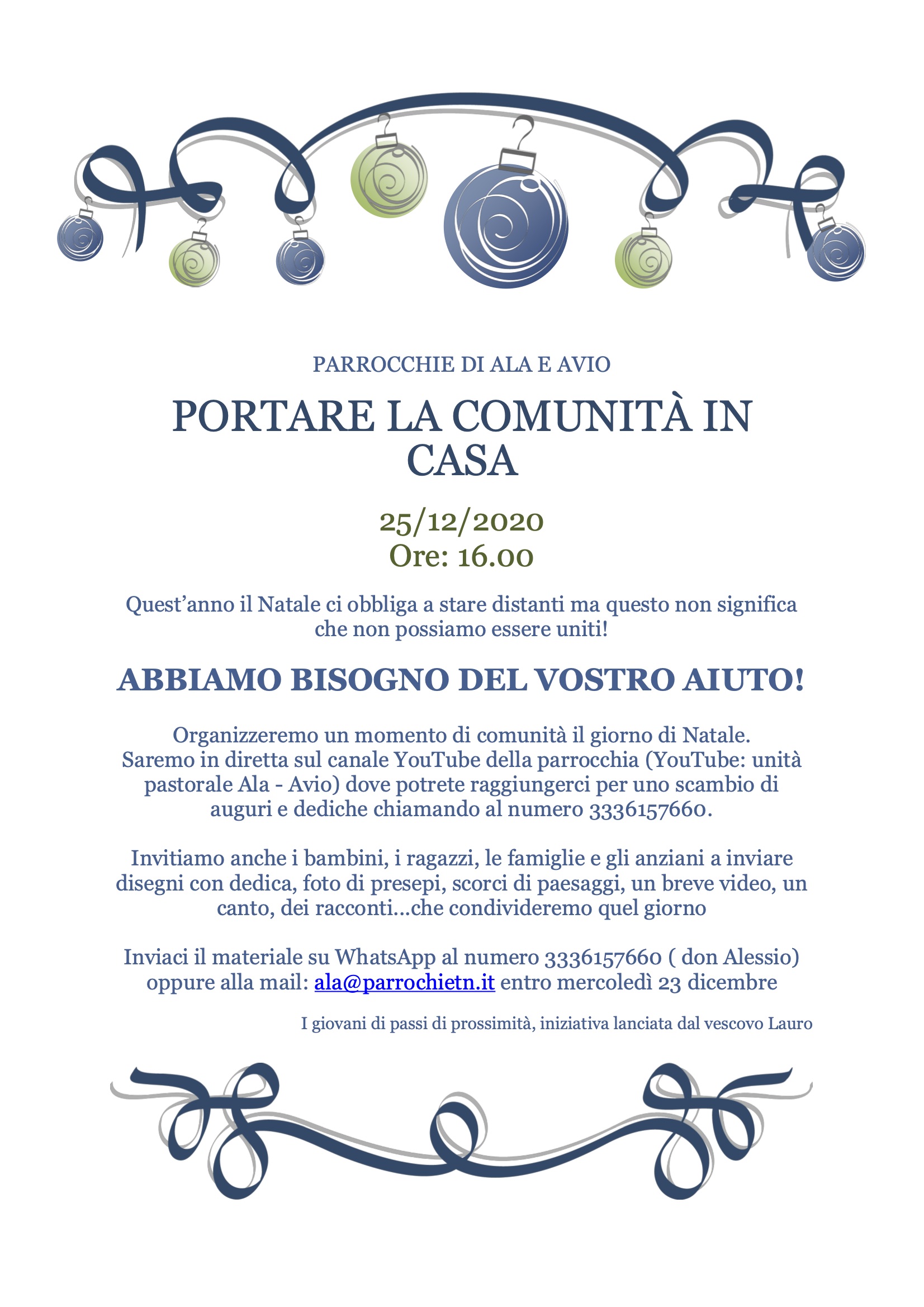 Portare la Comunità in Casa Pubblicato il 20 Dicembre 2020 Clicca per scaricare la locandina in formato PDF.