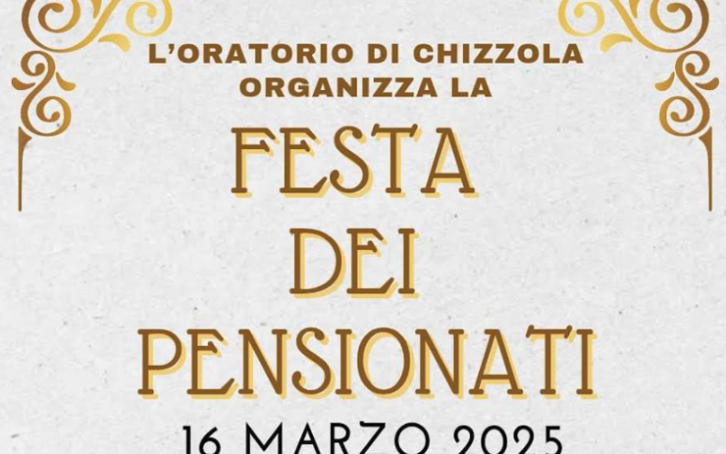 L’oratorio di Chizzola organizza la festa dei pensionati il 16 marzo 2025.