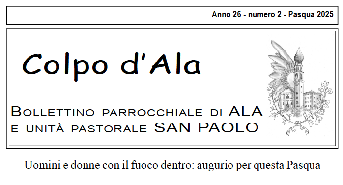 © 2026 Arcidiocesi di Trento, zona pastorale Vallagarina Parrocchie di Ala e Avio Parrocchie di Ala, Avio, Borghetto all'Adige, Mama d'Avio, Sabbionara, Vò Sinistro, Chizzola, Pilcante, Santa Margherita e Serravalle all'Adige